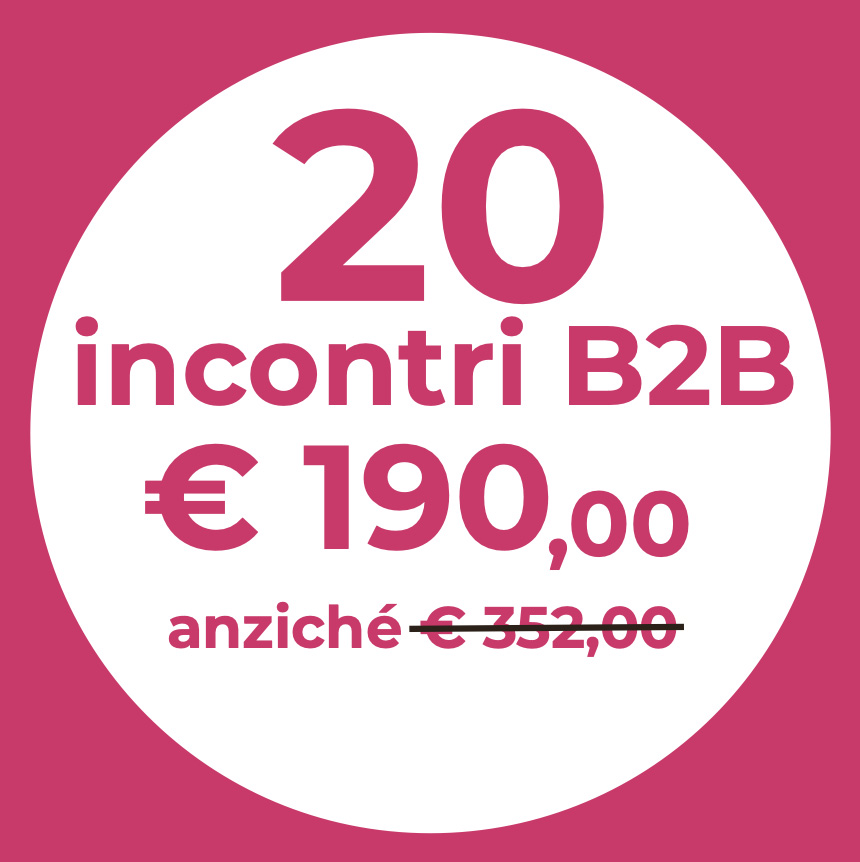 Agenda da 20 incontri B2B con 20 Tour Operator (Buyer) specializzati in Esperienze. L'agenda è generata in base alle preferenze di incontro espresse e ricevute nelle fasi preliminari (Like Session)